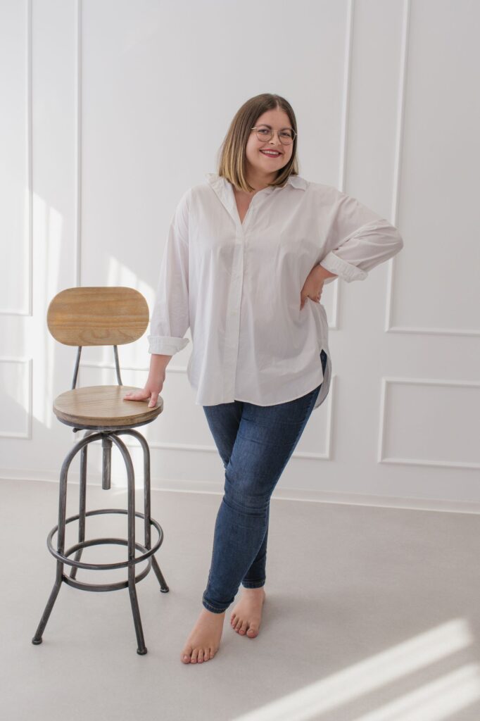 Selbstliebesshooting für Mamas und Businessfrauen in Greding. Indoor, voller Leichtigkeit, Selbstakzeptanz und echter weiblicher Stärke.